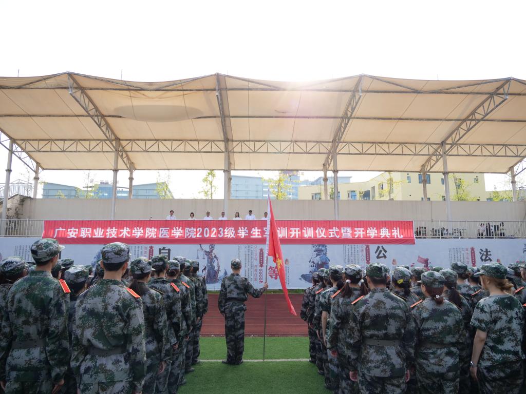 吴黎明宣读了《广安职业技术学院医学院2023级学生军训团人员编制》和《广安职业技术学院2023级学生军训管理规定》。副院长罗巧带领全体参训学生进行了医学生宣誓,军训学员代表和教官代表分别作了发言。