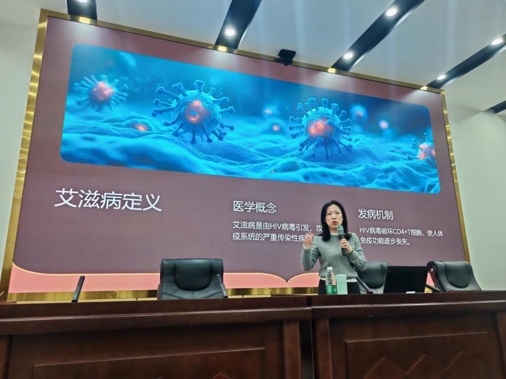 为积极响应第38个“世界艾滋病日”宣传教育活动,深入贯彻落实《中国遏制与防治艾滋病规划(2024—2030年)》工作部署,进一步加强高校青年学生群体的健康教育,提升艾滋病防治意识,消除认知盲区与社会歧视现象,11月25日下午,学校在滨江校区明德楼先圣厅举办了“世界艾滋病日”传染病防治知识专题讲座。学校辅导员代表、在校班级学生干部代表300余人到场听取讲座。
