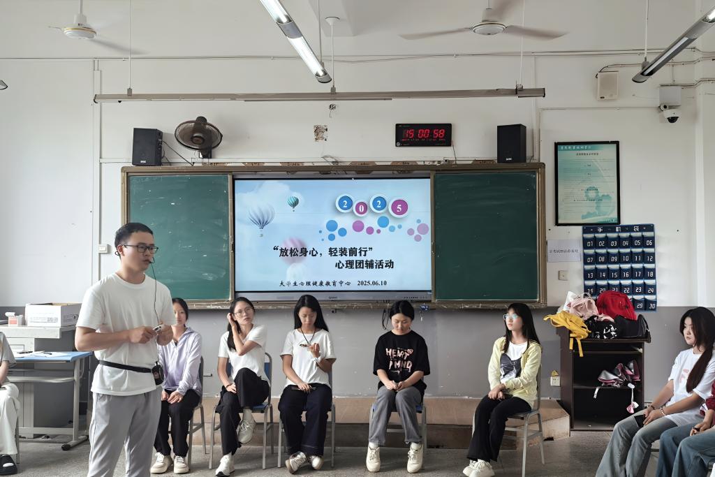 610日下午学工部在明德楼325教室组织学生开展了主题为“放松身心,轻装前行”的心理团辅活动大学生心理健康教育中心邓成龙老师以积极心理学为框架,引导学生在互动中学习压力管理与情绪调节以轻松的心态面对生活挑战