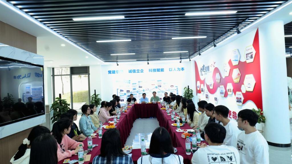 在园区负责人的引导下,大家先后参观了深广产业园渠江云谷展览馆、党群服务中心和人力资源服务中心,深入了解园区发展规划与运行情况。最后,师生一行来到易人和科技集团公司总部,实地考察企业运营模式和经营情况,并与企业负责人座谈交流。