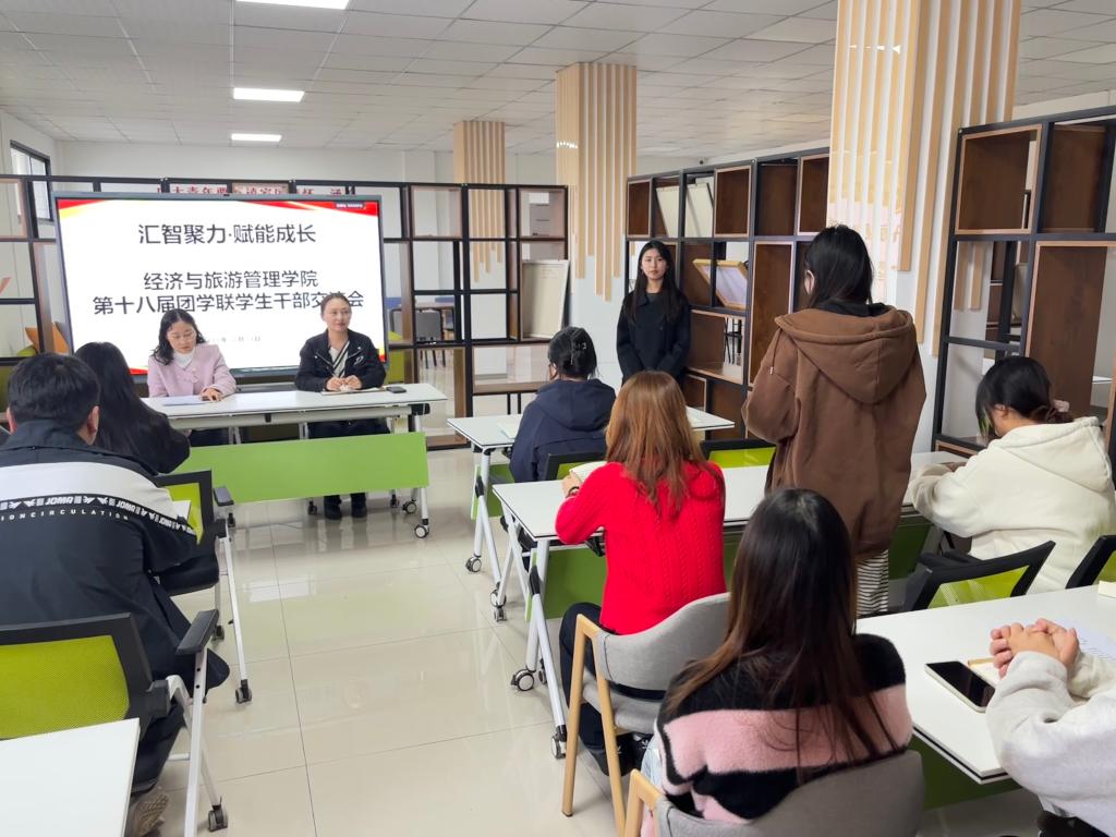 2025年11月11日中午,经济与旅游管理学院团学联学生干部交流会于学校一站式学生服务中心二楼隆重举行。学院党总支副书记杨燕、团总支书记刘海艳以及第十八届全体团学联学生干部齐聚现场,共同探讨工作、携手促进成长。